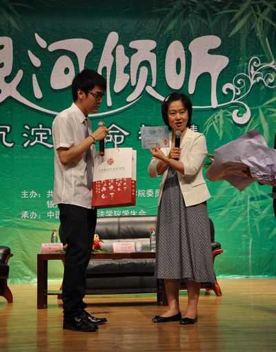 最后,鞠萍姐姐演唱了黄梅戏《女驸马》,并同现场同学合唱了《夫妻双双把家还》和《为了谁》。在欢快的氛围中本期活动成功落幕。