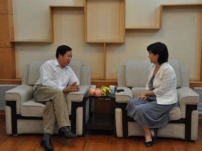 学生会承办的第十一期银河倾听于6月7日 19点在昌平校区礼堂精彩上演。央视著名少儿节目主持人鞠萍做客法大,与法大学子真诚对话。在节目开始前,我校我校党委书记冯世勇以及校团委书记王明宇在学生活动中心贵宾室接见了本期活动嘉宾鞠萍。
