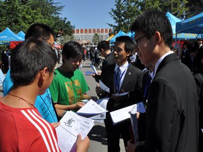 招新工作从17日上午一直持续到次日中午,我院大一新生表现出了对学生会工作的极大热情,他们表示学生会的工作不仅是使得自己的价值在实践中得到体现,而且这也是锻炼的机会,也会从中收获许多知识,提高实践能力。17日下午开始,许多新生就陆陆续续到展台前交报名表。18日下午14时开始,各部门开始进行面试,众新生态度积极,充分的展现着自我。