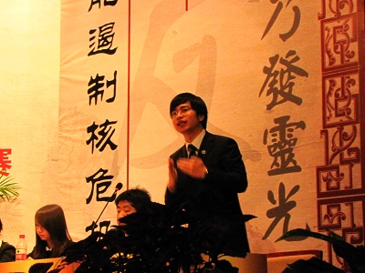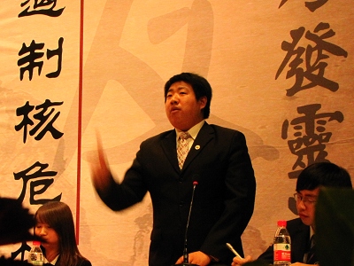 紧接着,到了整场比赛的最高潮——自由辩论环节。双方辩手交替发言,你来我往,从法国核废料埋到甘肃谈到美国核武霸权国际上无人可控,从日本核泄漏的技术层级谈到人类理性的缺失。可谓是针锋相对,精彩纷呈,博得了台下观众的阵阵掌声。