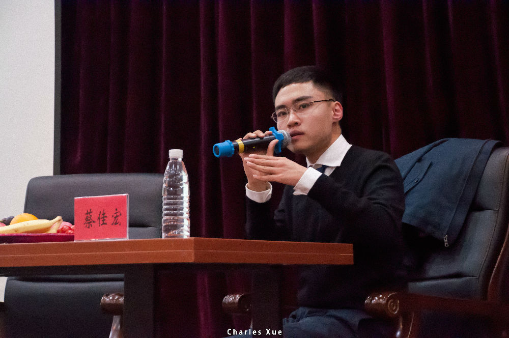 蔡佳宏同学首先与同学们分享了论文写作经验。作为曾荣获多项国际模拟法庭竞赛奖项的法大“学术十星”之一,蔡同学结合自身学习、竞赛经历,分别从“个人论文写作经验”及“法学论文小诊所”两块内容进行讲述。蔡同学不仅用生动的比喻为我们讲解了写一篇学术论文的完整流程,让同学们整体了解了学术论文写作,并且通过真实的论文案例,带同学们分析了许多常见的论文写作易错点,提前给同学们敲响了警钟。