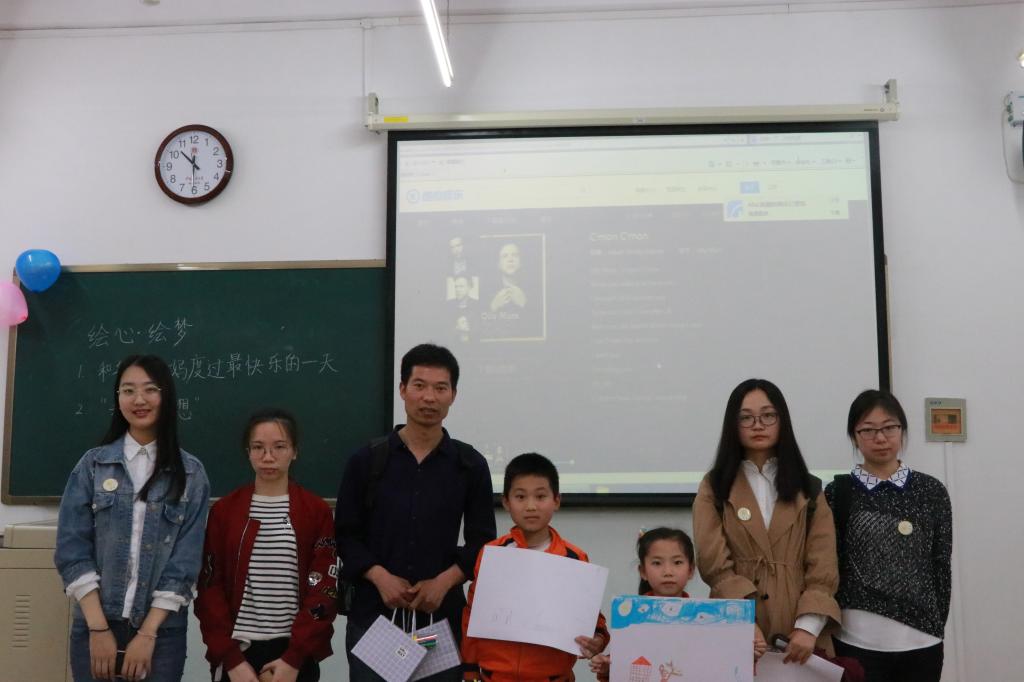 绵绵春雨,抵挡不住家长们与孩子们的期待,更抵挡不住志愿者们的热情。上午9时30分,家长们携孩子们来到我校。经工作人员分组后,志愿者们与负责的家庭逐渐熟悉起来。在家长们和孩子们领取了公益部准备的礼物后,开始了第一项活动“绘心绘梦”。孩子们从“和爸爸妈妈度过最快乐的一天”和“我的梦想”两个主题中任选其一,以绘画形式展现给自己的爸爸妈妈。孩子们用自己手中的画笔,描绘出一幅幅略显稚嫩却又真诚动人的图画。与此同时,志愿者们则与家长们和孩子们就学习与生活展开了亲切的交谈。活动结束后,孩子们拿着自己的作品和家长与志愿者合影留念,每个人的脸上都洋溢着微笑。