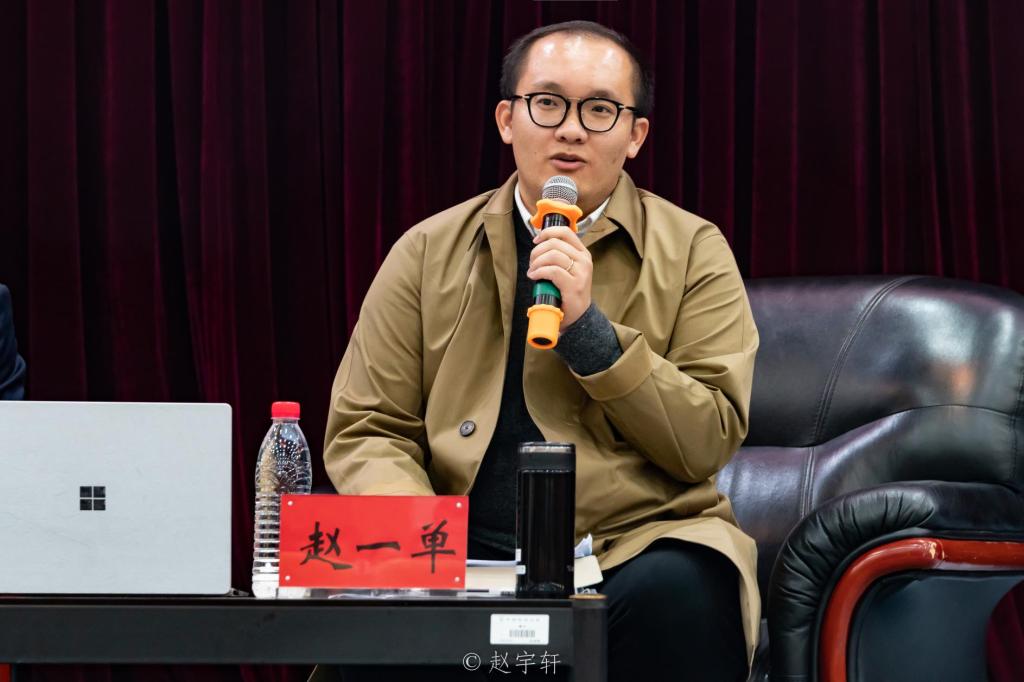 首先发言的是赵一单老师,他针对选题的过程将其分为问题、话题、论题三环节,并就问题到话题、话题到论题的转化向同学们进行了深入浅出的讲解。之后,在论文结构设计上,赵老师指出,结构要紧密围绕论点展开、拒绝冗余并拥有读者意识。最后,他借现场点评强调了将核心信息展示在标题与摘要的重要性。