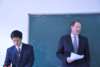 来汉瑞教用三句话交待其报告背景:一是刚刚上任的两位中国党政领导人都具有法学背景,可见法治中国未来前景乐观;二是在中国,通过教育改变自己的命运是个普遍的现象,德国可以向中国学习对教育的重视;三是保障财产分配的公平是中德共同面对的问题。中国社会主义市场经济与德国社会市场经济同时涉及社会与市场资本之间的平衡。