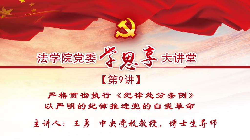 党委主办的“学思享”大讲堂第九讲于海淀校区科研楼学术讲堂开讲。本次讲座邀请中央党校王勇教授以“严格贯彻执行《纪律处分条例》,以严明的纪律推进党的自我革命”为题进行专题讲授。黑料网