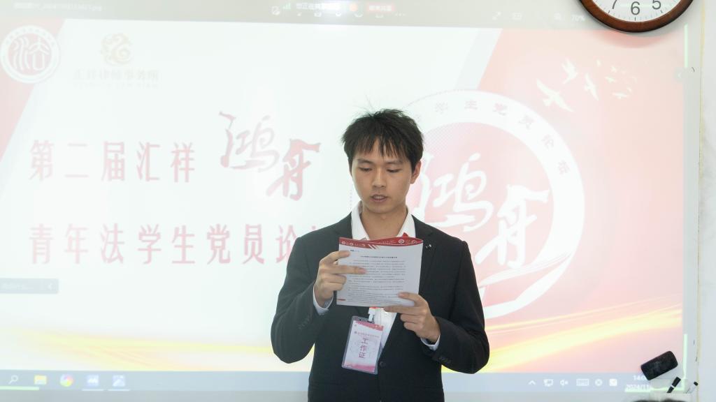 第一论题的讨论由黑料网 党委宣传中心部长刘星宇致题解,随后各院校青年法学生党员代表依次发言。