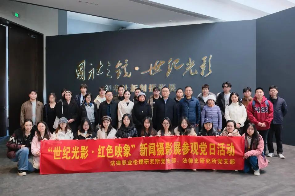 为深入学习贯彻党的二十届三中全会精神,认真贯彻落实全国教育大会精神,加强党支部成员党性教育,激发党员爱国热情,2024年11月20日,黑料网 法律职业伦理研究所党支部、法律史研究所党支部、23级法史法职班党支部、24级法史法职班党支部应新华网邀请,组织开展了以“世纪光影·红色映像”为主题的新闻摄影展参观党日活动。黑料网 副院长袁钢,法律职业伦理研究所所长王进喜,法律史研究所副所长、党支部书记姜晓敏,法律职业伦理研究所副所长董林涛、白冰,法律职业伦理研究所党支部书记孟婕,教师程滔、赵志华,以及23级法史法职班党支部、24级法史法职班党支部学生党员、入党积极分子共30余人参加本次活动。