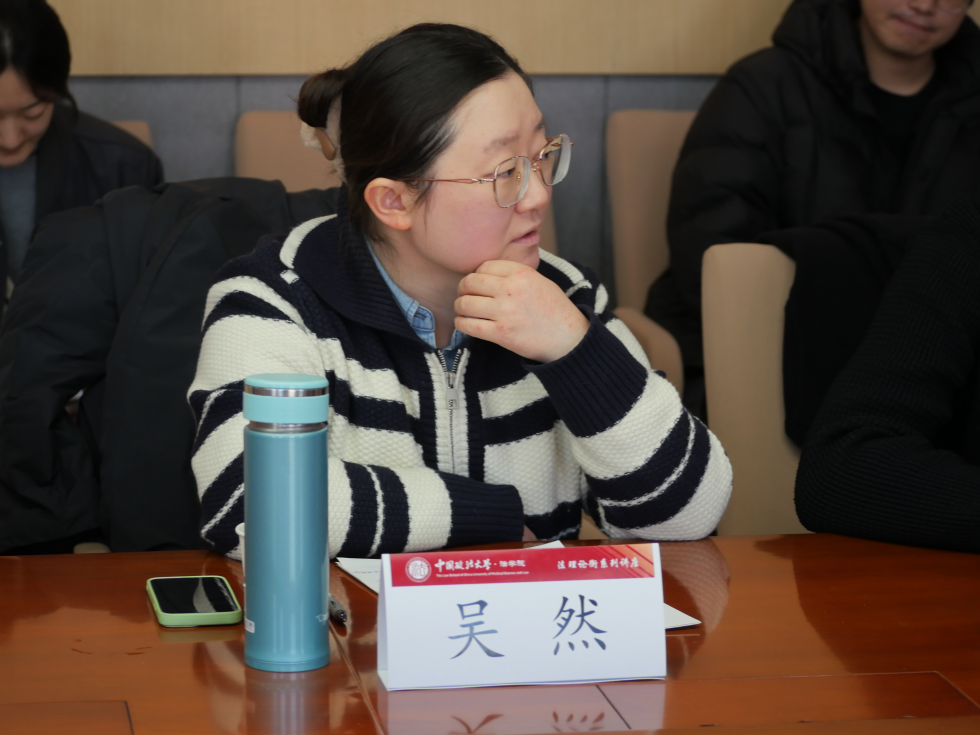 吴然老师表达了对史彤彪老师生动讲解技巧的赞赏,并指出史老师的授课风格为她未来的教学工作提供了宝贵的学习范例,史彤彪老师不仅展示了深厚的学术功底和专业知识,还在讲座中巧妙地融入了人文关怀,使得整个讲解过程既富有教育意义又充满温情,有利于引导学生思考法律背后的人文价值和社会责任。此外,吴然老师认为可以进一步深入对比分析中外法律实践,通过探析国外判例中自然法精神的体现方式,更好在我国司法实践中推进公平正义的实现。这不仅是对传统法学理论的一次深化拓展,也是对当代法治建设的一种积极回应。