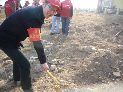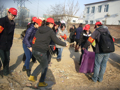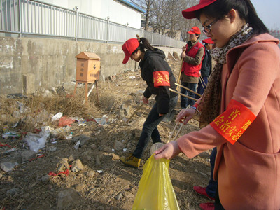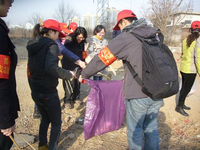 当日上午,09级2班党支部的11位学生党员乘公交车来到昌平嘉和园小区,受到了社区党支部的同志们的热烈欢迎。在居委会同志们的带领下,同学们拿起木夹、铁锹和垃圾袋来到小区北边的空地,走进垃圾堆里开始清理空地中的垃圾。虽然天气寒冷,但同学的心中充满了热情;虽然任务很重,但同学为了这份责任而乐此不疲。同学们没有一个怕脏怕苦,都手持木夹或垃圾袋,站在垃圾堆中拾捡着各种垃圾。同学们与社区党支部的同志们齐心协力,很快就高效地完成了清扫工作,小区北边的空地焕然一新。