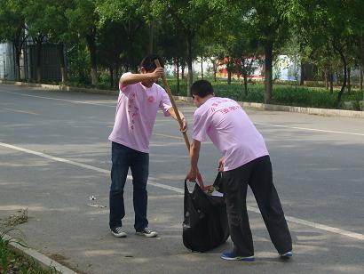 09级2班党支部23名党员来到昌平嘉和园小区,与社区党支部成功开展了美化社区环境活动。
