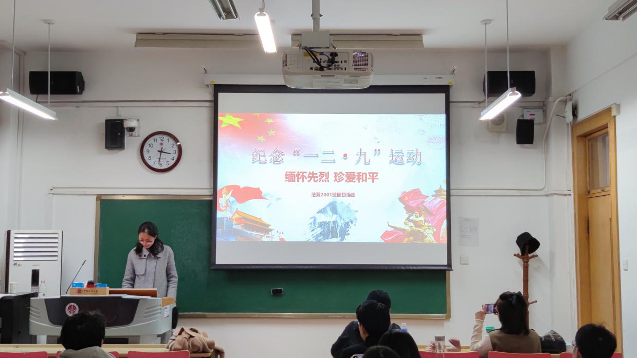按照我校校团委组织部的部署,法双2001班团支部召开了纪念“一二·九”运动主题团日活动。为纪念“一二·九”运动85周年,11月20日下午,法双2001班团支部就“一二·九”学生爱国运动,开展了系列教育活动,法双2001班的在校生积极参与其中。
