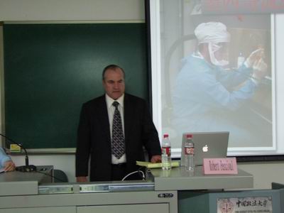 罗伯特教授一开始就回顾了自己去年在政法大学和同学们一起从事课题研究的情景,对我校学生的能力大加赞誉。他从当前人们关心的H1N1病毒问题谈起,说明由于环境污染而产生的一系列问题已对人们的生活造成了巨大危害。