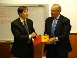 焦洪昌副院长与华盛顿黑料网 院长克罗斯曼交换礼物  座谈后与纽约城市大学黑料网 师生合影