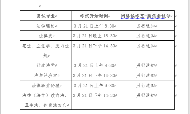 报到时间:3月20日上午(请所有考生9:30进入报到预备会议室,腾讯会议号552 455 649)。