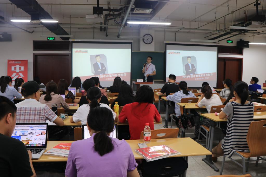 研究生会承办的“巅峰职场”系列活动之2019年国考政策和备考指导公开课在我校学院路校区科研楼科地202教室顺利举行。公务员考试资深辅导专家吝浩轩老师出席本次活动。