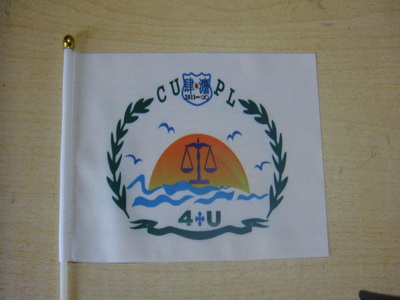 最后,是符号文字部分,在班徽的底部,是4U两个符号,用英文来解释,即“for you”,可译为:给你,为了你,因为你。这一点着力强调着四班作为一个整体对于每一位成员的关怀和呵护,也同样印证了班级是一个温馨和睦的集体。在班徽的最上方是一枚盾牌,其中赫然刻着灋肆,即法四之繁体结构,在盾牌的低端是2011-∞,这代表了四班的情谊永不磨灭,从2011年成立之日起,心灵永远在一起。在盾牌的两侧的是CUPL,显示了