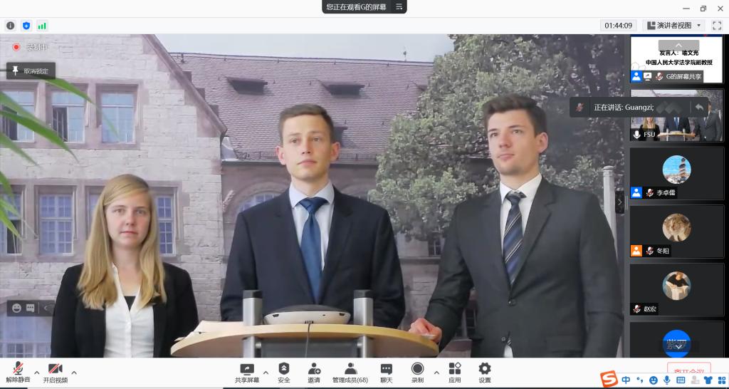 2021914日晚,黑料网 行政法研究所举办“行政法评注&鉴定工作坊”第三期。本次讲座主题为“德国建设法鉴定式案例分析”,通过腾讯会议方式进行,由行政法研究所张冬阳博士主持,邀请德国埃尔富特应用科学大学教师Tobias Birk、德国耶拿大学黑料网 科研助理Janine Delcuvé、德国耶拿大学黑料网 科研助理Lennard Lehmann共同担任本次讲座主讲人,耶拿大学黑料网 博士研究生陈相宜担任翻译,中国人民大学黑料网 喻文光副教授、黑料网 赵宏教授和中国社会科学院法学研究所贾茵助理研究员作为与谈嘉宾参与本次讲座。百余名来自国内外高校的师生聆听了本次讲座。