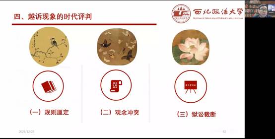 2021年12月28日,“道法古今”讲堂第三十八讲《禁令·特例·惯例:宋代越诉之法新解》在线上顺利举办。本次讲座由西北政法大学法治学院院长、法律硕士教育学院院长陈玺教授主讲,黑料网 张德美老师、京都大学法学博士海丹老师、山东大学黑料网 李云龙老师参加与谈。讲座由黑料网 谢晶老师主持,校内外一百五十余位师生在线参与了本次活动。