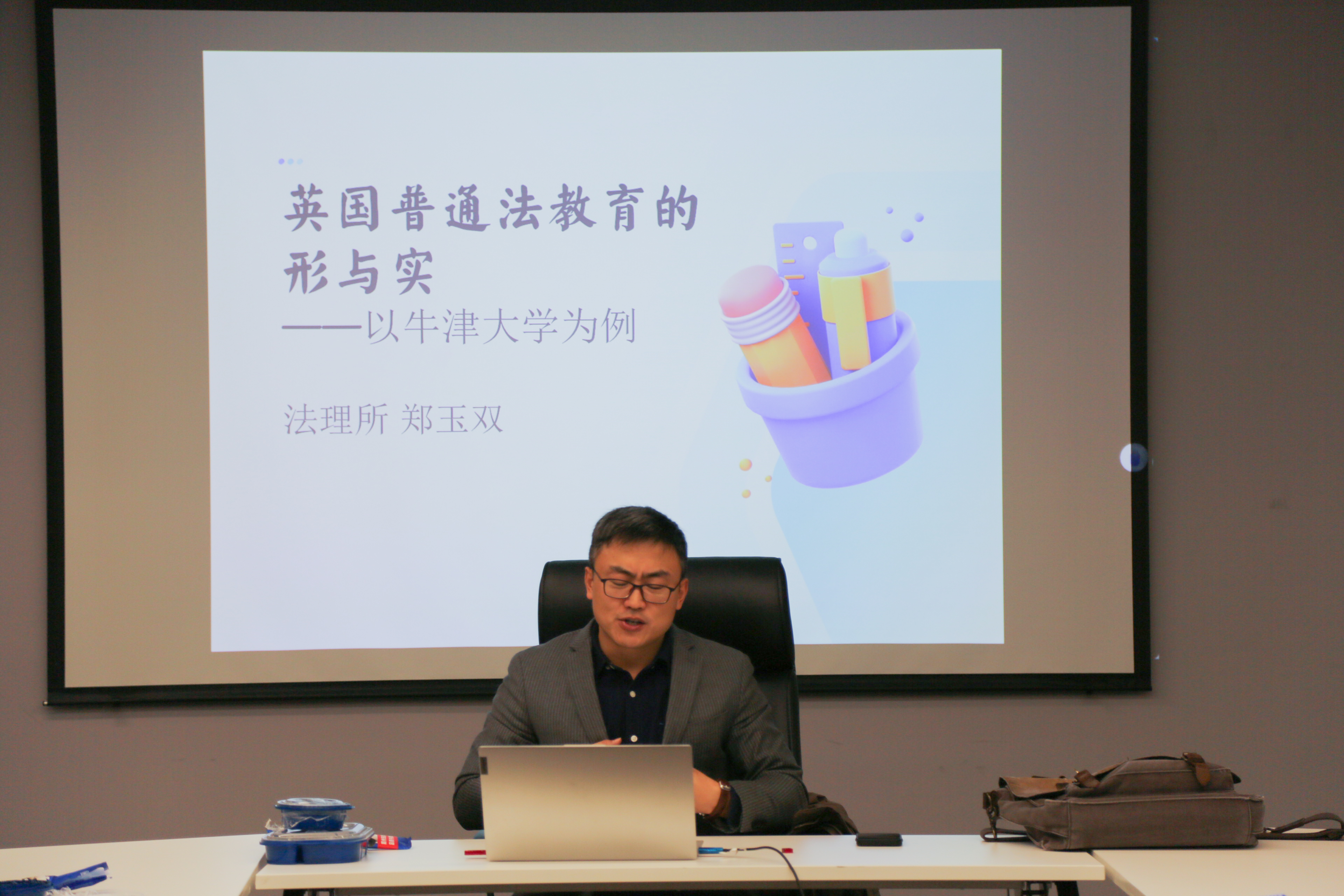 活动伊始,郑玉双以“英国普通法教育的形与实——以牛津大学为例”为题进行学术分享。他以自己在英国留学时的所见所闻为切入点,展开对英国法律教育、牛津大学法律系的介绍,对以牛津大学为代表的英国普通法教育体系进行了详尽剖析。就英国普通法教育体系的特点、牛津大学本硕博培养体系、学科设置、课程模式和教师组成以及牛津大学中国法研究中心进行了重点解读,并结合牛津大学“中国法”的研究现状,以国际化的视角分析了牛津大学的法学研究动向。