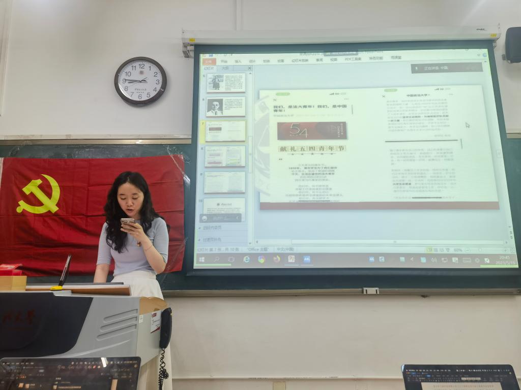 1904党支部书记曹睿同志做主题名为《以青春之使命,书时代之华章》的党课发言。曹睿同志从“五四运动”出发,阐述在革命年代的青年儿女需要有什么样的精神品质,再转向当今年代,分析当今社会需要怎样的青年儿女,最后激励大家在自己平凡的岗位上做出不平凡的成就。