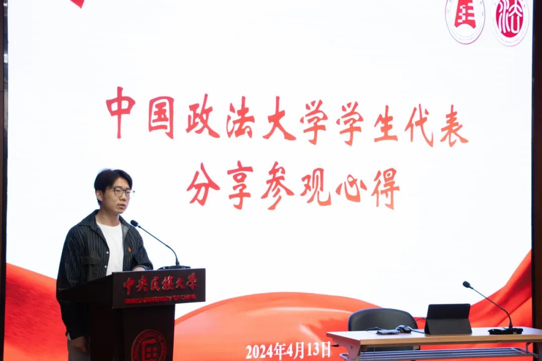 的学生党员储萌和张兴兴分享了自己在参观过程中的感受,从法学角度分析促进民族和谐和繁荣的当前实践,并提出两校之间进一步扩大交流平台的美好希望。随后,两院书记先后赠礼、两院老师向学生代表赠礼,并合影留念。