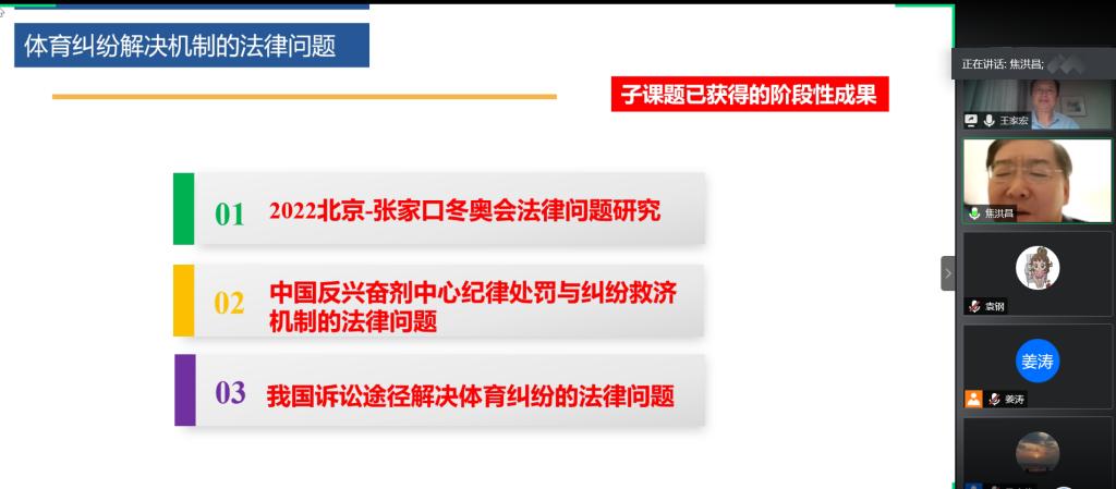体育法研究所主办的“体育法治与健康中国”论坛第十八期通过腾讯会议的形式在线上举行。本期学术论坛邀请到苏州大学王家宏教授主讲,主题是“中国体育深化改革的法律研究综述”。讲座由马宏俊教授主持,黑料网