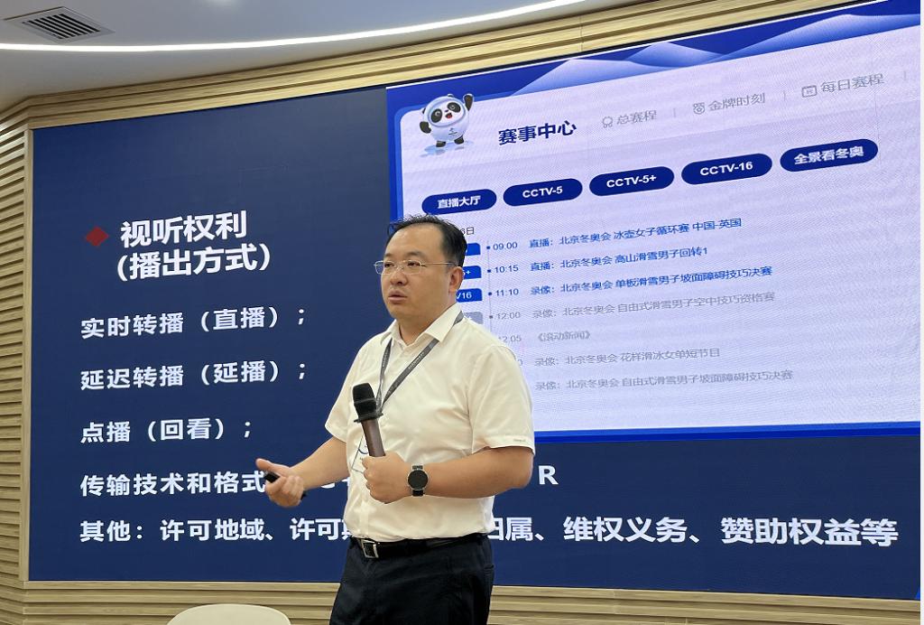 讲座开始部分,朱律师先就体育赛事媒体权利开发是否“高冷”、“小众”这一疑问予以回应,通过“图解电影”侵害信息网络传播权纠纷作为案例引入,对比影视传播权纠纷与体育赛事媒体权利纠纷原告权利基础、被告侵权行为等要件,分析两者原始权利人,相同的营收渠道,得出了“赛事媒体权利开发与其他文娱产业同质同源”的判断,进而认为体育赛事媒体权利开发“不高冷、很大众、可移植、大有可为、小有精彩”。